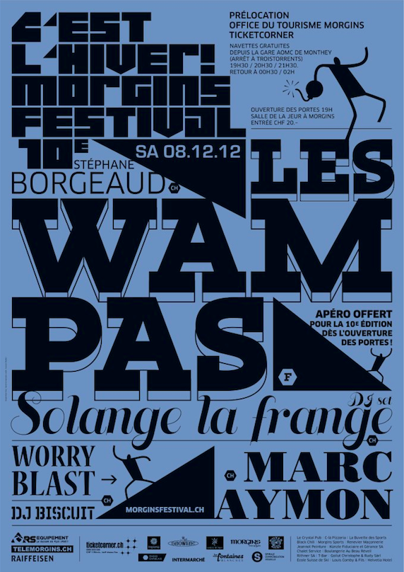 L’édition 2012 du C’est l’Hiver! Morgins festival à eu lieu le 8 décembre 2012 avec les artistes suivants :